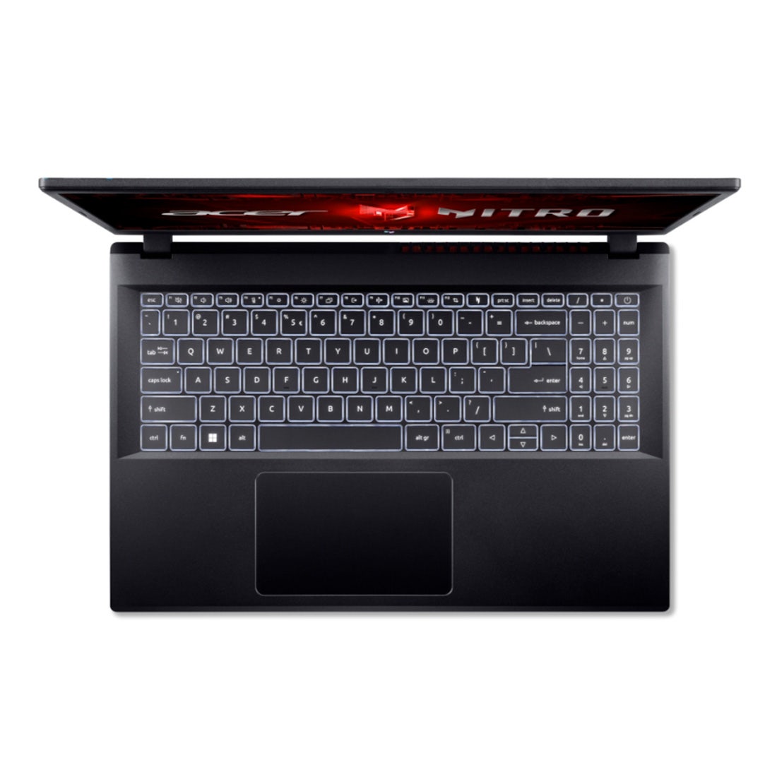 | Teclado e touchpad | Teclado: • Tipo membrana em português do Brasil padrão ABNT 2 • Teclado retroiluminado na cor branca com ajuste de intensidade • Teclado numérico independente • Atalho multimídia e funções (Tecla FN) + (Play, pause, parar, voltar, avançar, aumentar volume, diminuir volume, mudo e etc) • Tecla de atalho Nitro Sense Touchpad: • Multi gestual com dois botões suportando rolagem com dois dedos, gestos para abrir Cortana, Action Center, multitarefa e comandos de aplicativos • Resistente a umidade • Sem zona morta • Certificação Microsoft Precision Touchpad |
